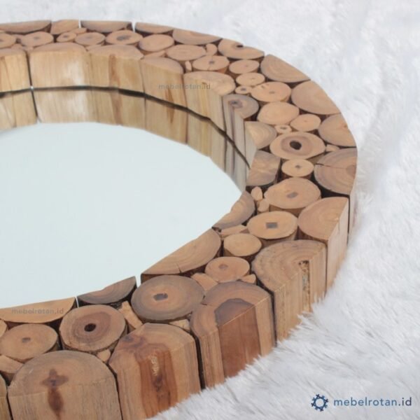 Cermin Gantung Bulat Kayu Jati